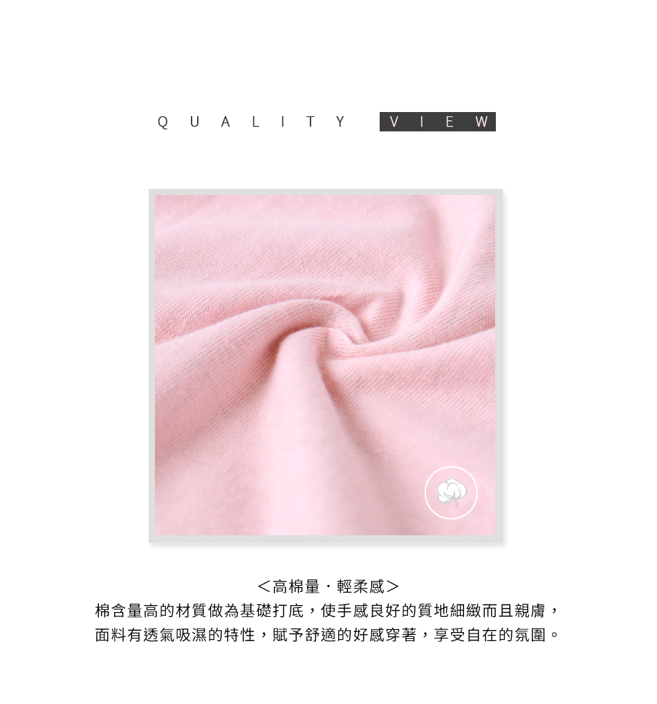 台灣製造的優質面料親膚柔軟,提供舒適的好感穿著體驗~