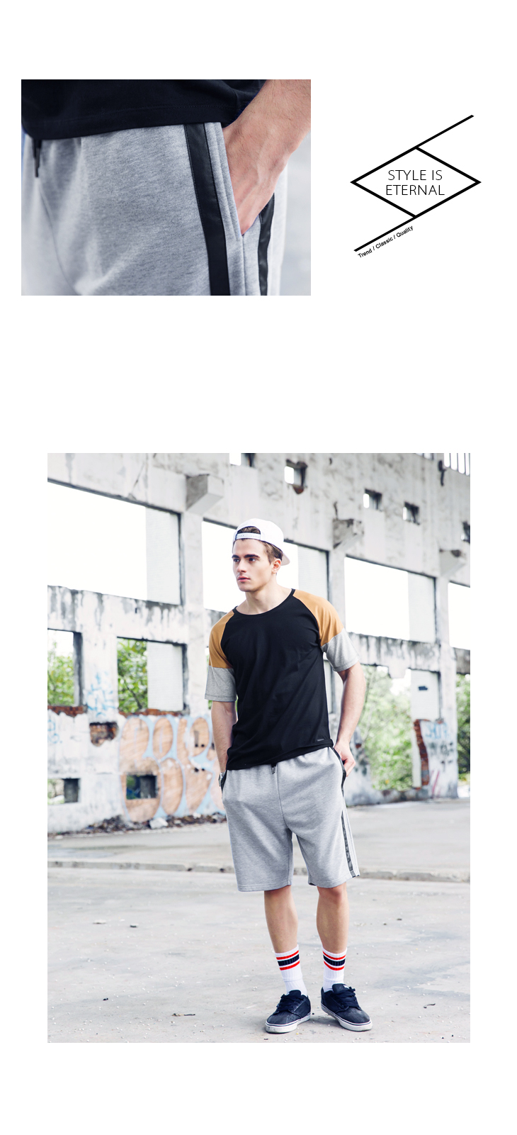 並於褲子側面加入直條點綴,貫徹街頭潮流氣息~