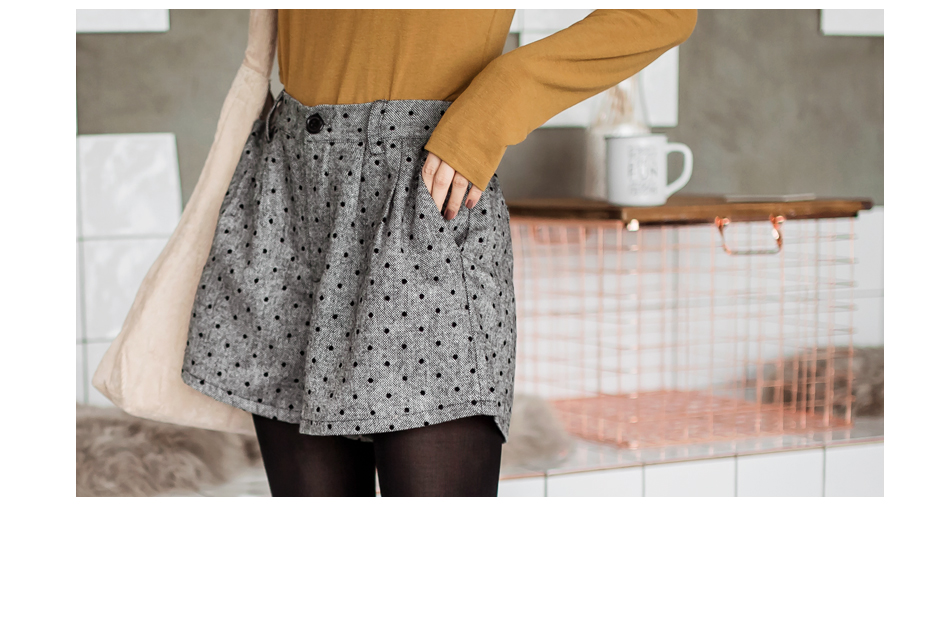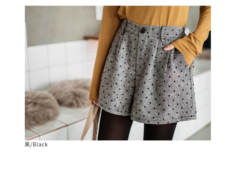 混紡羊毛的面料,穿著舒適觸感柔軟又具有保暖效果 滿版點點的設計充滿青春氣息,搭配褲襪就能打造秋冬溫暖穿搭! ********************** 小提醒:後腰鬆緊,釦可開,前口袋為真,後口袋為 售價:369