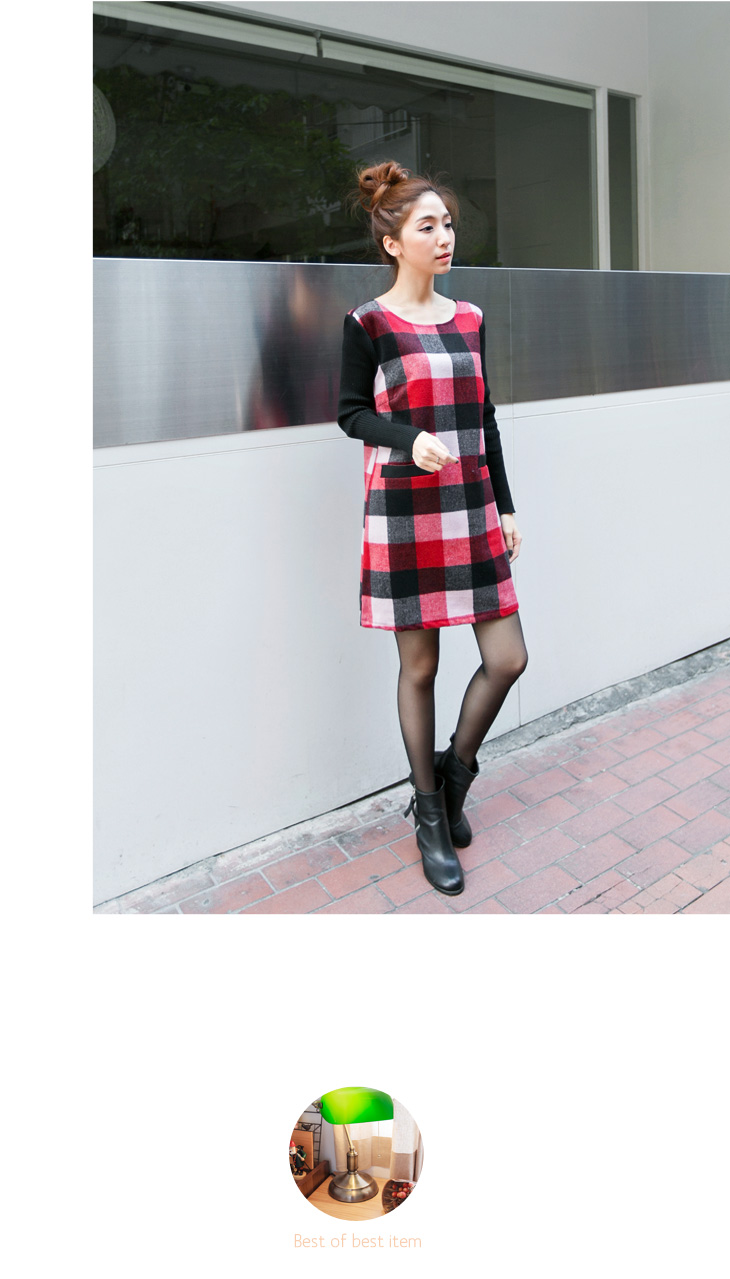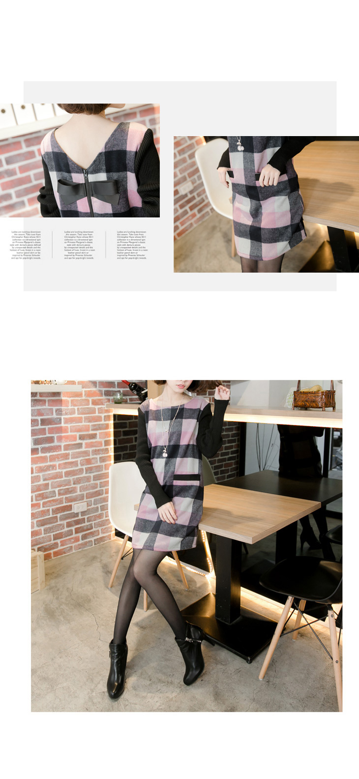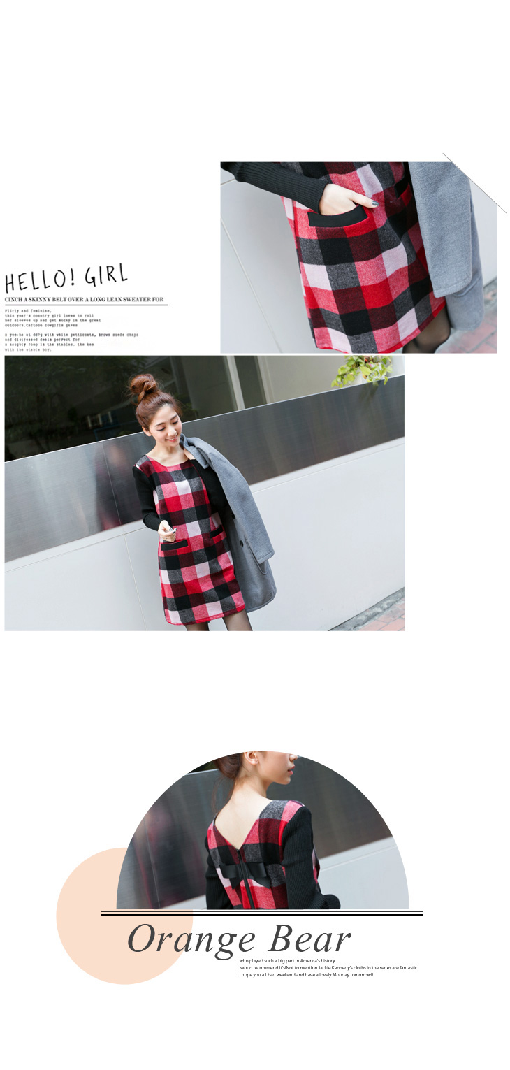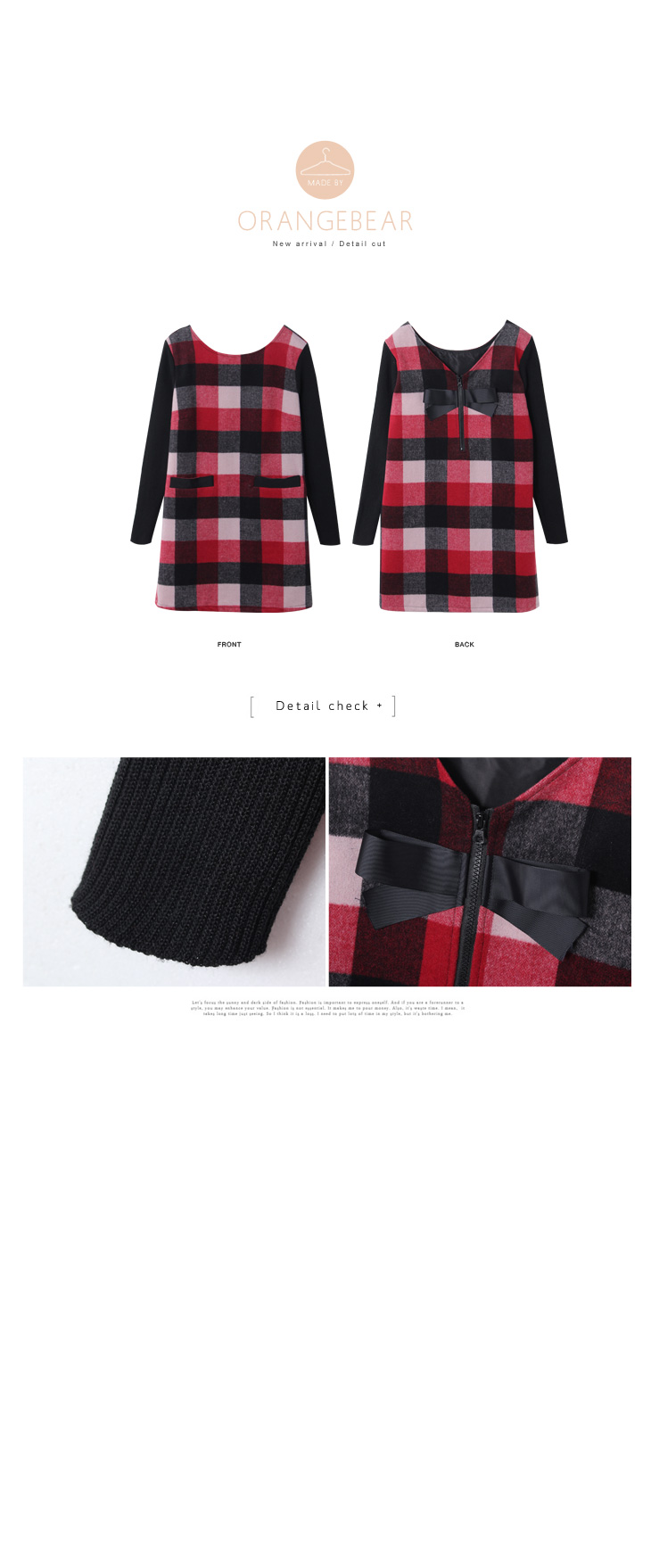版型偏大 高質感的混羊毛格紋面料mix針織長袖,展現溫暖的層次感! 雙口袋與後蝴蝶結的細節設計,更襯托出女孩的甜美! **************************** 小提醒: 後拉鍊可開,有 售價:499