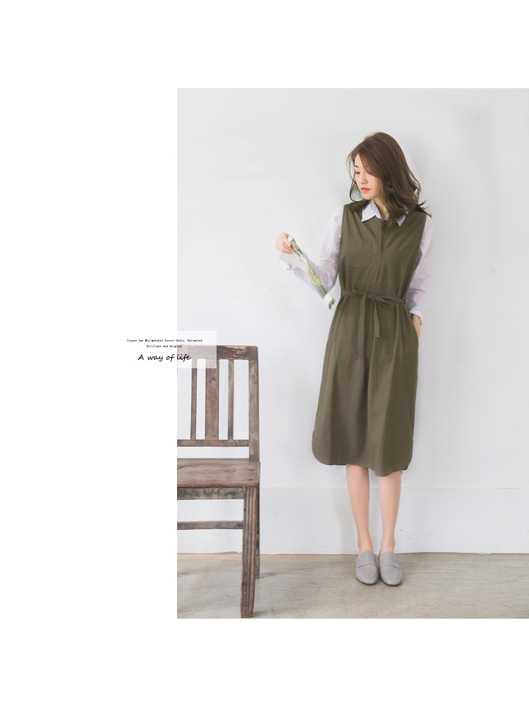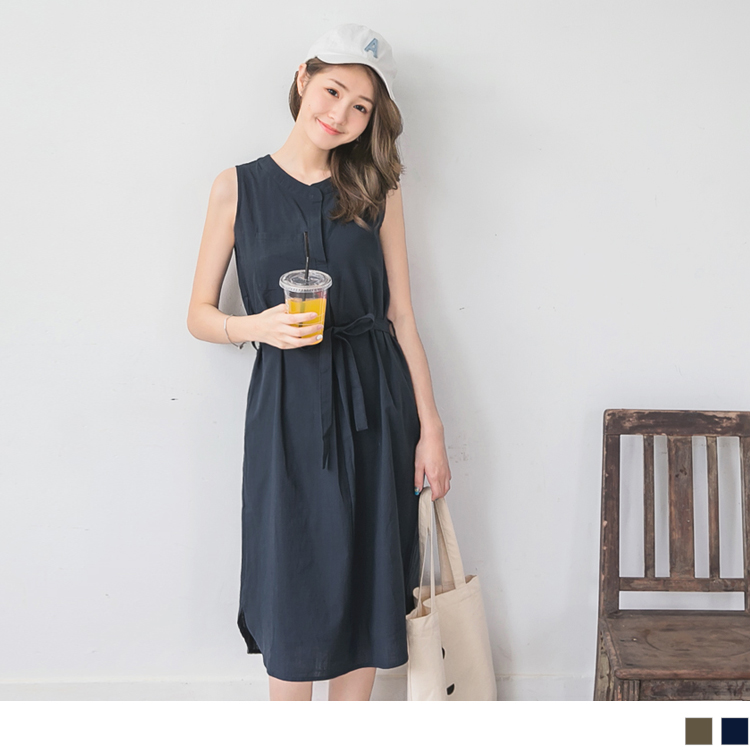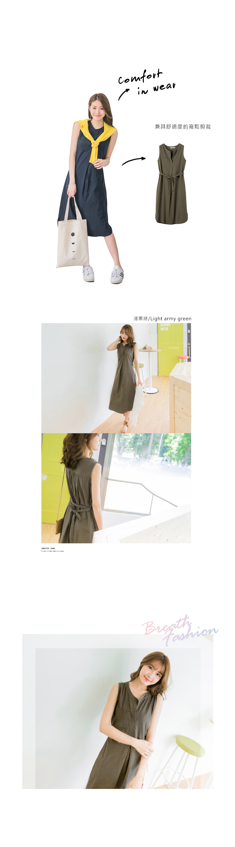 版型偏大 請依照個人喜愛的舒適度購買 純色的棉麻質感背心長洋裝, 穿出鄰家女孩般的清新氣質 半開襟剪裁使胸口肌膚不經意露出, 加上單邊口袋隨興感加乘 在腰上繫上隨附的綁帶可令腰身現形,女性魅力up! 售價:399